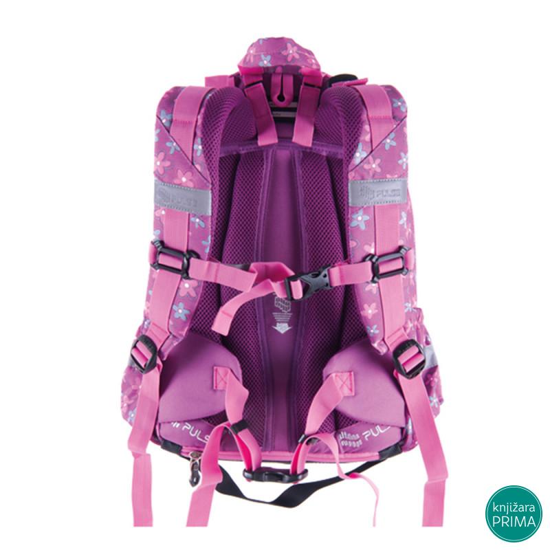 Anatomija leđa obezbeđena je uz podršku specijalnih materijala koji omogućavaju cirkulariciju vazduha kao i aluminijumske šipke uz mogućnost skidanja tog dela pri pranju. Ovakav model ranca prebacuje opterećenje sa kičme na noge tako da vaše dete ne oseća neugodnost pri nošenju težih knjiga. Gumirano dno ranca sadrži i pregradu u kojoj se nalazi kabanica fluorescentne boje radi zaštite od padavina i dodatne bezbednosti u saobraćaju. Reflektujuće trake sa svih strana ranca posebno su bitne pri prelasku ulice i u noćnim uslovima slabe vidljivosti. . Detaljnije