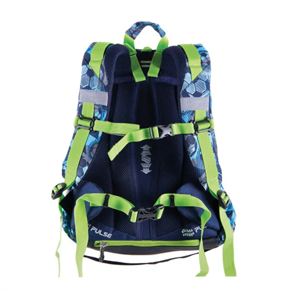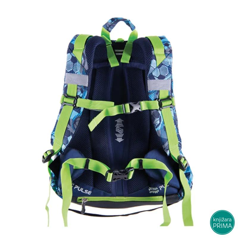 Anatomija leđa obezbeđena je uz podršku specijalnih materijala koji omogućavaju cirkulariciju vazduha kao i aluminijumske šipke uz mogućnost skidanja tog dela pri pranju. Ovakav model ranca prebacuje opterećenje sa kičme na noge tako da vaše dete ne oseća neugodnost pri nošenju težih knjiga. Gumirano dno ranca sadrži i pregradu u kojoj se nalazi kabanica fluorescentne boje radi zaštite od padavina i dodatne bezbednosti u saobraćaju. Reflektujuće trake sa svih strana ranca posebno su bitne pri prelasku ulice i u noćnim uslovima slabe vidljivosti. . Detaljnije