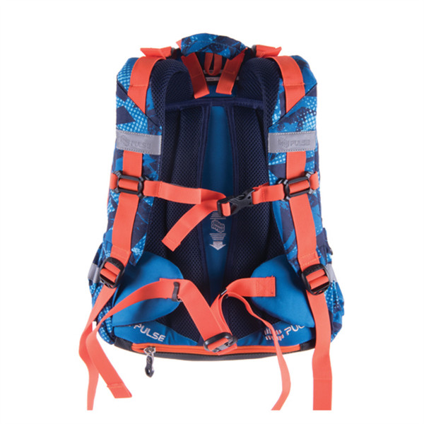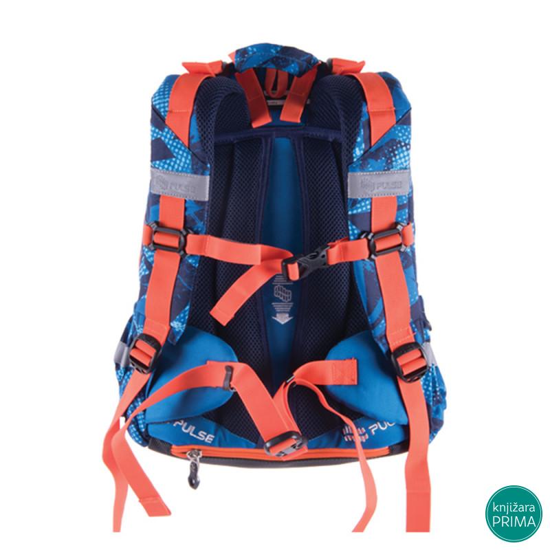 Anatomija leđa obezbeđena je uz podršku specijalnih materijala koji omogućavaju cirkulariciju vazduha kao i aluminijumske šipke uz mogućnost skidanja tog dela pri pranju. Ovakav model ranca prebacuje opterećenje sa kičme na noge tako da vaše dete ne oseća neugodnost pri nošenju težih knjiga. Gumirano dno ranca sadrži i pregradu u kojoj se nalazi kabanica fluorescentne boje radi zaštite od padavina i dodatne bezbednosti u saobraćaju. Reflektujuće trake sa svih strana ranca posebno su bitne pri prelasku ulice i u noćnim uslovima slabe vidljivosti. . Detaljnije