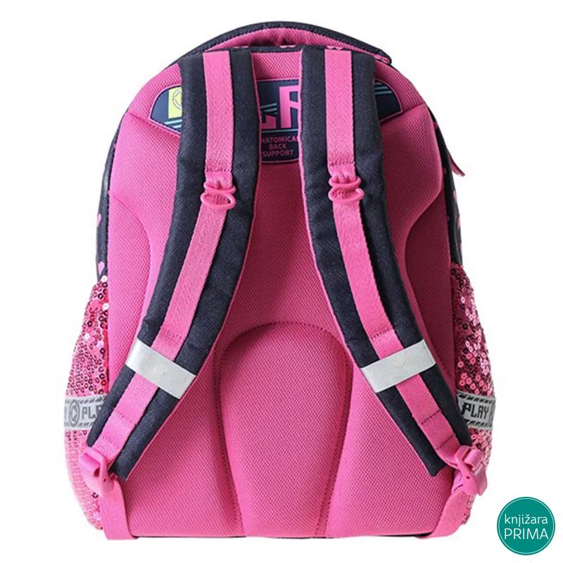 Samostojeći, triput opšiveni, vodootporna tkanina, visokokvalitetni poliester, reflektujuće bezbednosne trake, ramenice u obliku banane, podesive ramenice, kopča za fiksiranje ramenica, meka ručica sa postavom, lagan i izdržljiv. Džepovi sa strane, anatomski oblikovana mrežasta leđa, ventilirajuća leđa, štampana postava, organizator u prednjem džepu.