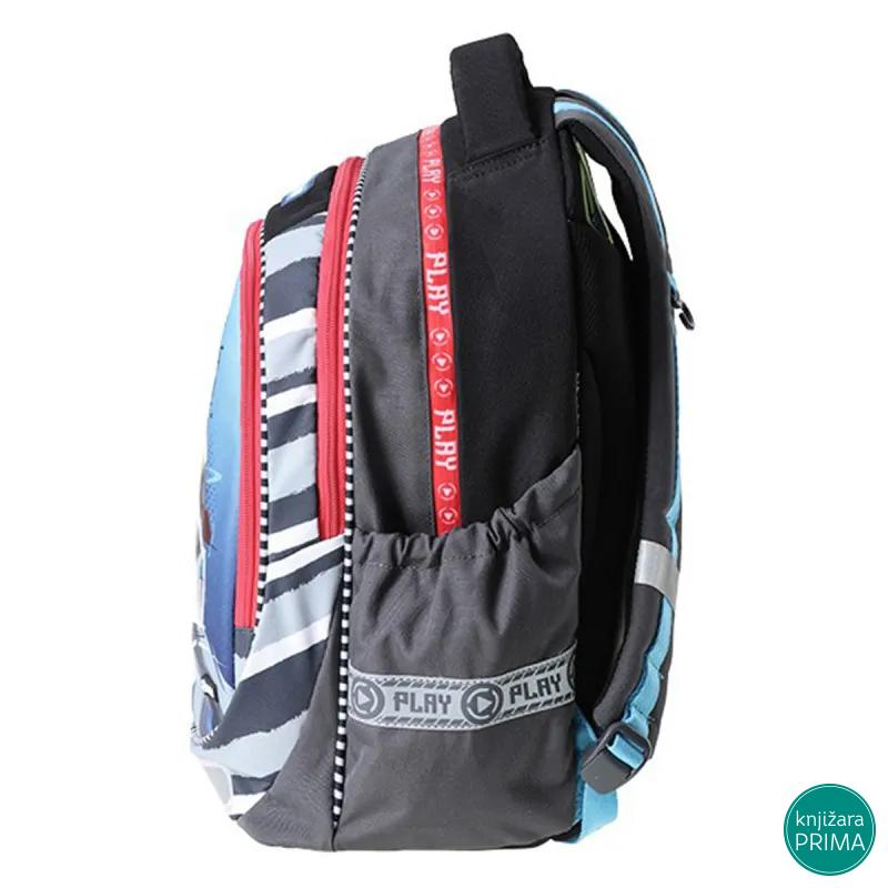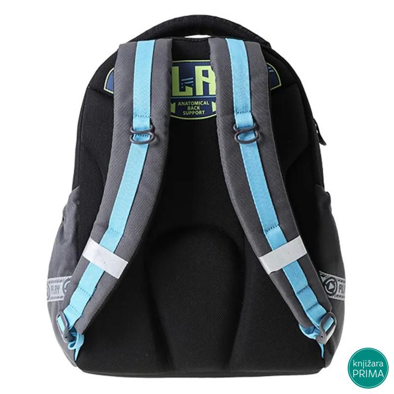 Samostojeći, triput opšiveni, vodootporna tkanina, visokokvalitetni poliester, reflektujuće bezbednosne trake, ramenice u obliku banane, podesive ramenice, kopča za fiksiranje ramenica, meka ručica sa postavom, lagan i izdržljiv. Džepovi sa strane, anatomski oblikovana mrežasta leđa, ventilirajuća leđa, štampana postava, organizator u prednjem džepu.