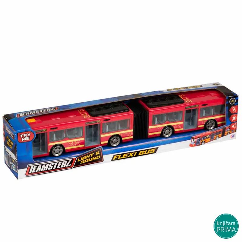 Kreiraj trasu nove autobuske linije koja je upravo počela sa radom -u tvojoj sobi! Na njoj sada saobraća tvoj novi dupli fleksi autobus sa harmonika spojem i detaljno uredjenom unutrašnjošću - otvori vrata i uveri se i sam! Sigurno će se dopasti tvojim igračkama-putnicima! Dugačak je 46 cm i ima dovoljno mesta za sve! Pokreni bus i upali svetla dok voziš čuju se zvuci motora! Uzrast: 3+ godine Materijal: plastika elektroinstalacije karton Dimenzije: 46 x 56 x 74 cm Set sadrzi: fleksi bus sa zvukom i svetlima *potrebne su 2 LR44 baterije i dobijaju se uz pakovanje . Detaljnije