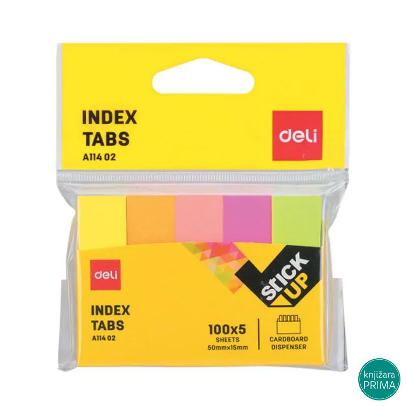 Blok samolepljivih stikera za obeležavanje strana Dimenzije: 50x15mm Broj listova: 500 (5x100) Lako se lepi na sve površine Lako se odlepljuje i ne ostavlja tragove Stikeri se nalaze u kartonskoj ambalaži