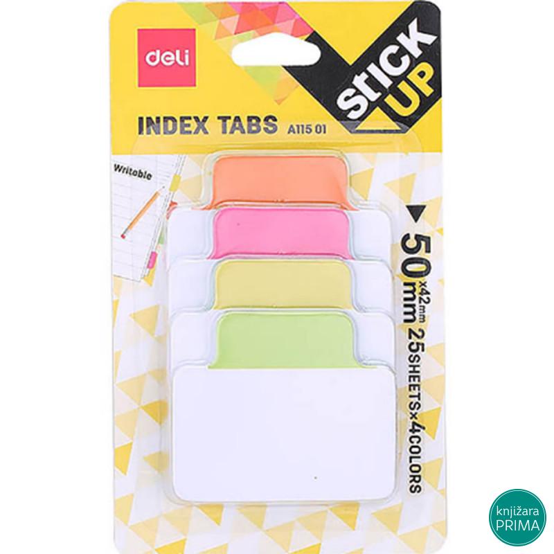 Blok samolepljivih stikera za obeležavanje strana Dimenzije: 50x42mm Broj listova: 100 (4x25) Lako se lepi na sve površine Lako se odlepljuje i ne ostavlja tragove