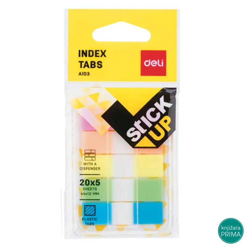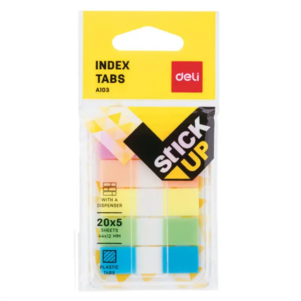 Blok samolepljivih plastičnih stikera za obeležavanje strana Dimenzije: 44 x12mm Broj listova: 100 (5x20) Lako se lepi na sve površine Lako se odlepljuje i ne ostavlja tragove Stikeri se nalaze u plastičnoj kutijici Moguće je pisati po stikerima