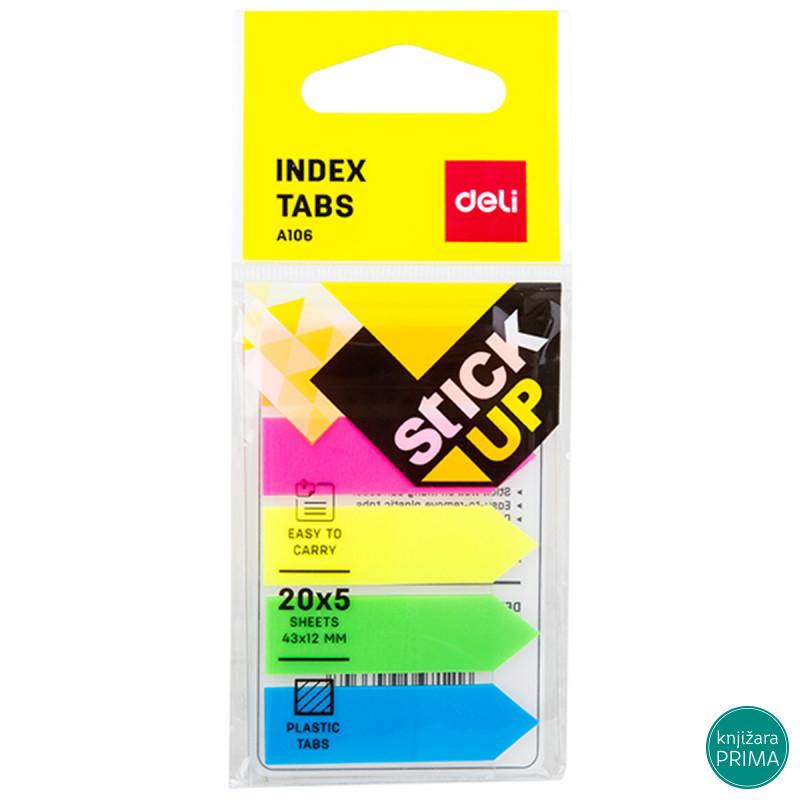 Blok samolepljivih plastičnih stikera za obeležavanje strana Dimenzije: 43x12mm Broj listova: 100 (5x20) Lako se lepi na sve površine Lako se odlepljuje i ne ostavlja tragove Stikeri se nalaze na plastici koja se može zakačiti za svesku Moguće je pisati po stikerima