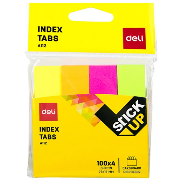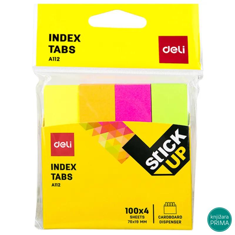 Blok samolepljivih stikera za obeležavanje strana Dimenzije: 76x19mm Broj listova: 400 (4x100) Lako se lepi na sve površine Lako se odlepljuje i ne ostavlja tragove Stikeri se nalaze u kartonskoj ambalaži