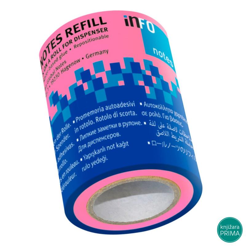 Samolepljivo blokče u rolni INFO Sticky notes - neon pink