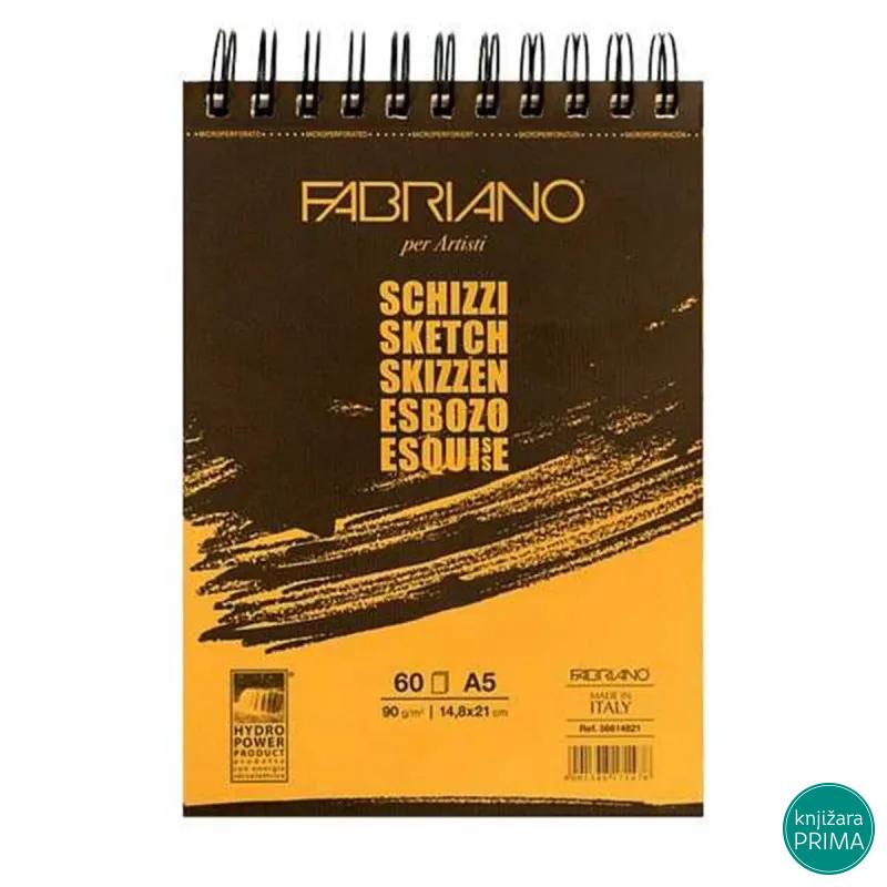 Blok za crtanje FABRIANO 60L 90g A5 spirala gore