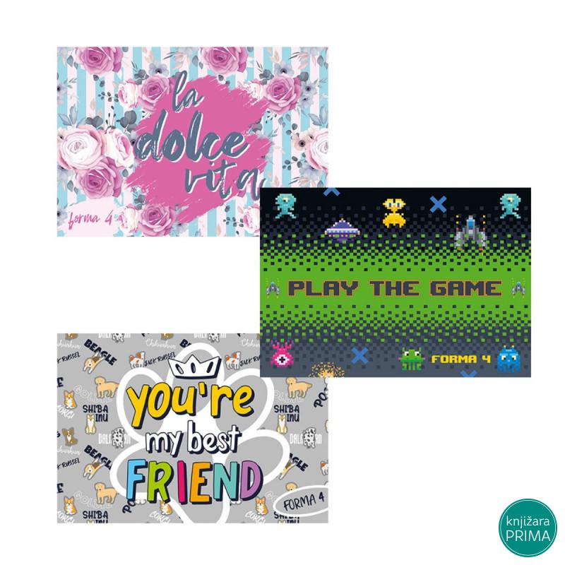 Blok za crtanje br.4 atraktivnih I popularnih dizajna čini ga neizostavnim artiklom za svakog malog umetnika. U bloku se nalaze 10 listova kvalitetnog akvarel papira – 105gr.
