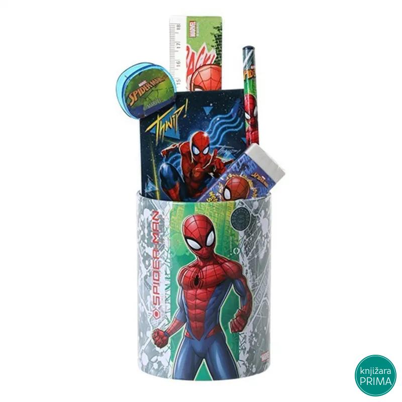 Sedmodelni Disney školski set u čaši obradovaće svakog prvaka! U setu se nalazi metalna čaša za olovke lenjir 18cm gumica rezač grafitna olovka blokčić i štipaljka.
