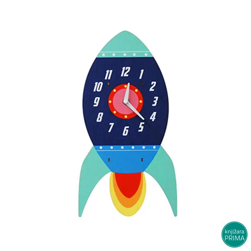 Dečiji zidni sat Dimenzije: 38 x 18 x 3 cm Materijal: drvo plastika lepak karton Koristi jednu AA bateriju. Detaljnije