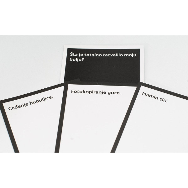 Opšta pravila igre, više varijanti uz mogućnost izmišljanja novih pravila samih učesnika. Ukoliko želite i ostale edicije, tj.dopunske verzije sa novim belim i sivim kartama, pogledajte ostale edicije na našem sajtu. Ova, kao i ostale edicije su nezavisne. To znači da možete igrati ovu ediciju bez prethodnih delova. Smatrajte ovo samo nekom vrstom dopune ukoliko imate prethodne modele.