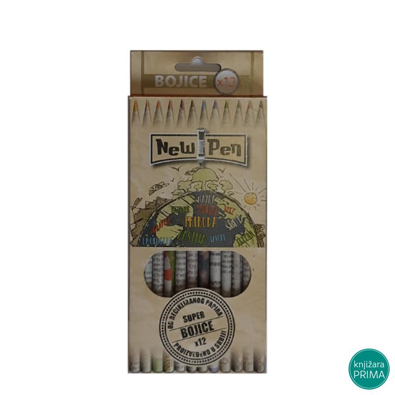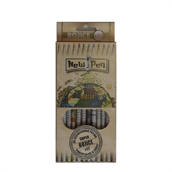 Eko bojice od recikliranog papira NewPen grafitne olovke i bojice su napravljene od recikliranog novinskog i drugog recikliranog papira. Ovakav način proizvodnje olovaka i bojica u prvi plan stavlja zaštitu životne sredine i to na sledeći način: Očuvanjem šuma: ne koristi se drvo - ne seče se drveće čime se usporava proces globalnog zagrevanja i ne stvara se otpad Reciklažom: reciklirani papir se koristi u proizvidnji Ponovnom upotrebom: već upotrebljeni reciklirani novinski papir sada dobija novu primenu u olovkama Svaka bojica je unikat! Ekološki proizvod napravljen u Srbiji.