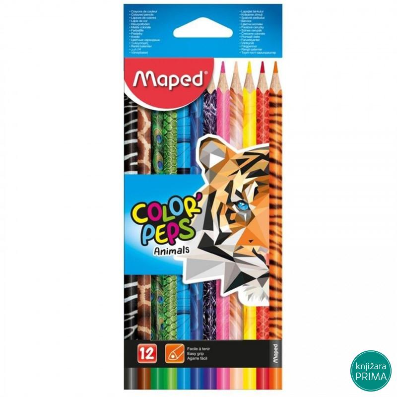 Drvene bojice MAPED ANIMALS Intenzivne boje Otporan vrh debljine 29 mm Trouglasti oblik bojice 12 bojica u pakovanju