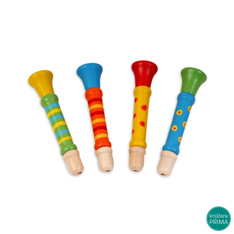 Trubica veselih boja koja će privući pažnju deteta i uvesti ga u svet tonova i muzike. Dimenzije: O3.5×12.5 cm Preporučen uzrast: za decu stariju od 2 godine.