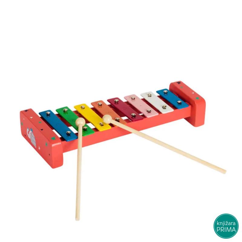 Istraživanje sa muzičkim instrumentima i drugim zvučnim sredstvima i materijalima omogućava detetu da otkrije izvore zvukova način rasprostiranja da razlikuje njihovu jačinu visinu trajanje i boju. U igri muzičkim instrumentima dete upoznaje svoje muzičke mogućnosti stvara sopstvene načine muzičkog izražavanja i reprodukovanja otkriva i upoznaje svoja opažanja osećanja potrebe i maštanja ideje i misli svoje kreativne domete. Dimenzije: 26 x 12 x 4 cm Preporučen uzrast: za decu stariju od 18 meseci. Detaljnije