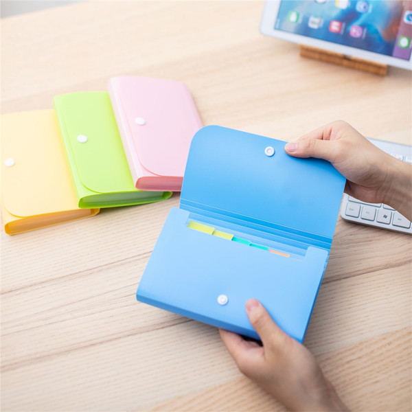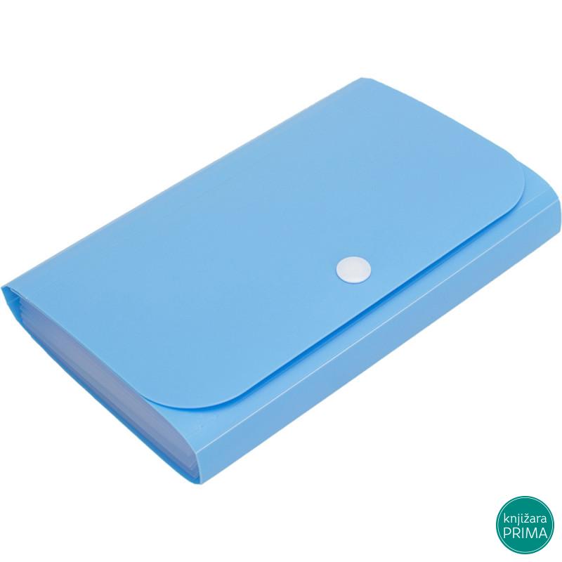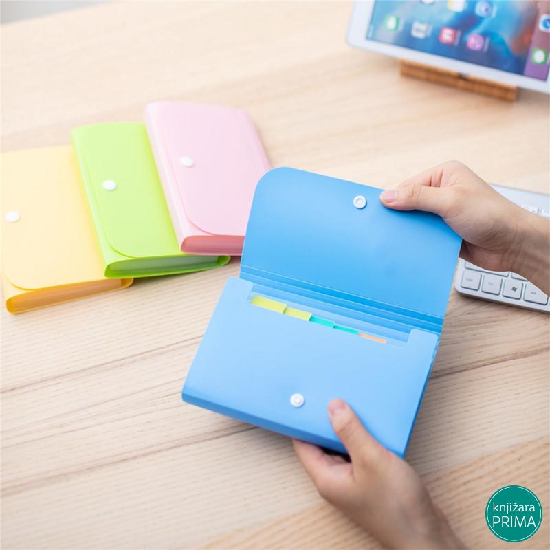 Mini plastična fascikla sa pregrdama i zatvaranjem da dugme.