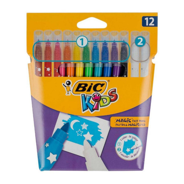 Pakovanje od 10 izbrisivih Bic flomastera i dva bela flomastera brisača. Ispravite greške ili kreirajte originalan dizajn sa flomasterima brisačima.