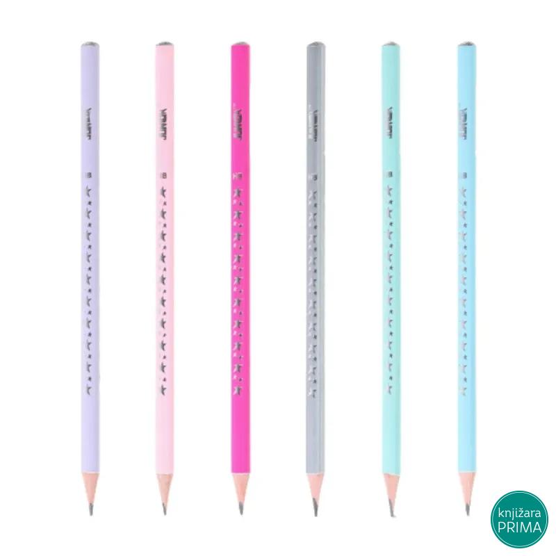 Glow grafitna olovka u prelepim bojama sa metalnik zvezdicama.