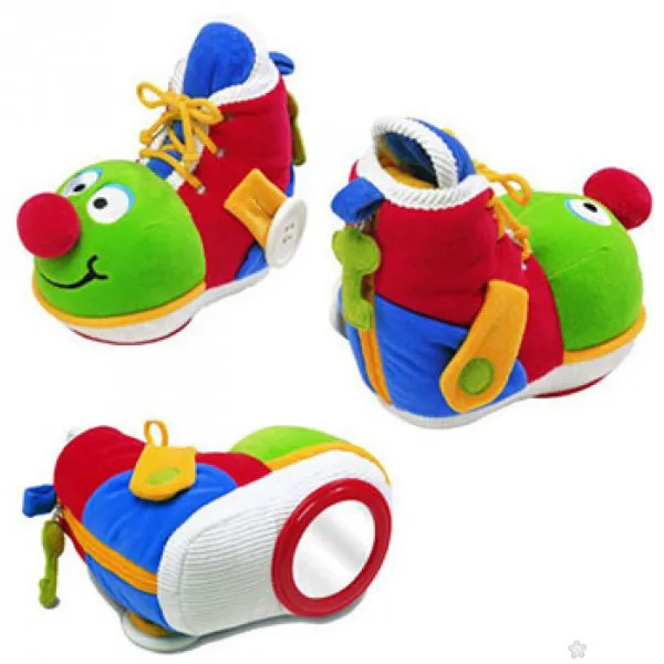 Dimenzije: 20 x 11 x 19 cm Mekana aktivna igračka sa 7 edukativnih aktivnosti- igraj se i uči u isto vreme! Karakteristike: zveckajući nosrajsferšlusdugmetelo koje ispušta zvuk kada se stisne i neravna površina.Takodje može i da se pertla. . Detaljnije