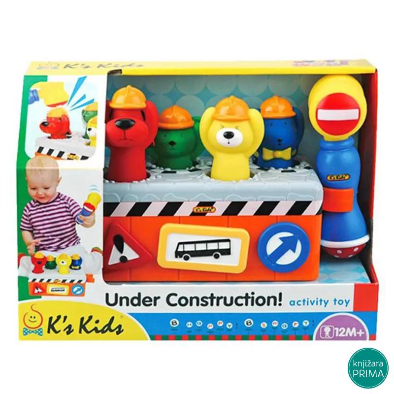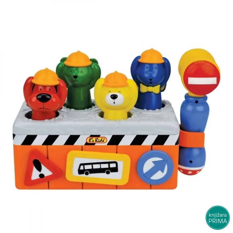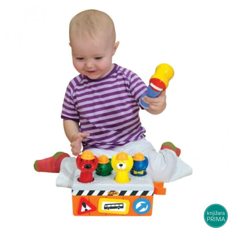 Dimenzije: 23 x 16 x 195 cm Igračka je napravljena od visokokvalitetnih materijala u skladu sa evropskim standardima što je čini savršeno bezbednom za decu. Podstiče vizuelni stimulans razvoja deteta. Namenjeno je deci uzrasta 12m+. Drži čekić u ruci i udari u konstrukciju videćeš Patrikove prijatelje kako se pomeraju gore-dole.Da li čuješ zvuk? Potiče iz čekića. . Detaljnije