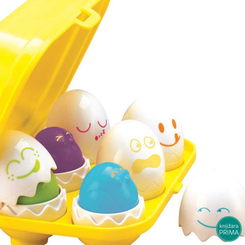Tomy muzička jaja najsmjanih i simpatičnih lica idealna su za mališane uzrasta od 6 meseci. Karton sadrži 6 mesta za 6 Tomy muzičkih jaja i svako dno ima ulegnuće određenog oblika kome odgovara samo ono jaje koje na svom dnu ima isti takav ispupčeni oblik. Kada se skine poklopac jajeta u vidu ljuske ispod se krije jedno od 6 raznobojnih jaja kome odgovara poklopac sa crtežom lica u boji u kojoj je i jaje. Prtiskom na jaje čuje se simpatično pijukanje što deci čini igru zabavnijom. Kroz igru mališani razvijaju logičke sposobnosti unapređuju pažnju stimulišu pamćenje i uče boje i oblike. Podstaknite razvoj vašeg deta i unapredite njegove sposobnosti i to kroz igru uz Tomy muzička jaja. Uzrast: 6+ meseci Materijal: plastika Dimenzije pakovanja: 14 x 21 x 8 cm Set sadrži: 1 karton za jaja i 6 muzičkih jaja
