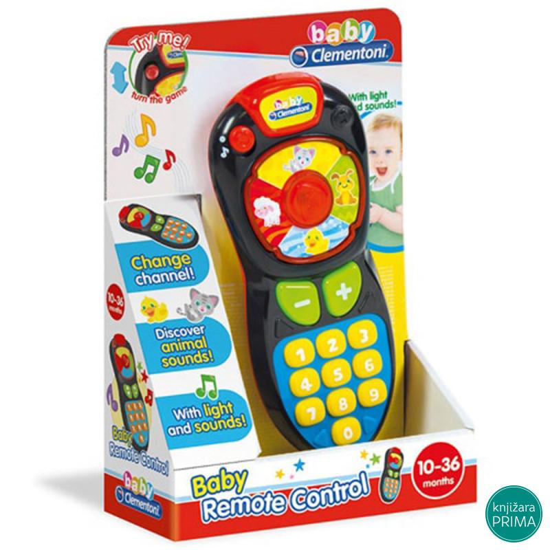 Uključite zabavu pritiskom na ovaj slatki interaktivni daljinski za najmladje! Sa 10 dugmića sa brojevima i 4 dugmeta u boji dete će učiti o životinjama bojama i brojevima. A tu su i svetlosni efekti i puno zvukova. Stimuliše vizualnu percepciju sluh i koordinaciju okica i ruku. Uzrast: 10 + meseci Materijal: plastika Dimenzije: 6 x 14 x 20 cm Set sadrži: interaktivni daljinski i baterije
