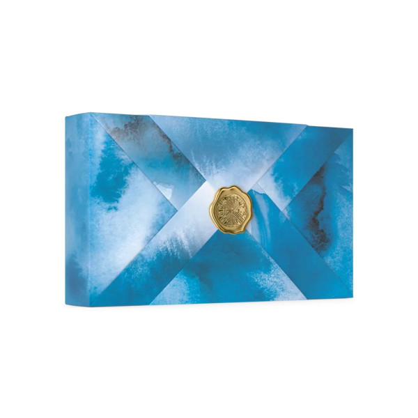 Proizvodi su upakovani u čvrstu kutiju, a kutija je origami tehnikom upakovana u ukrasni papir zapečaćen zlatnim voskom.