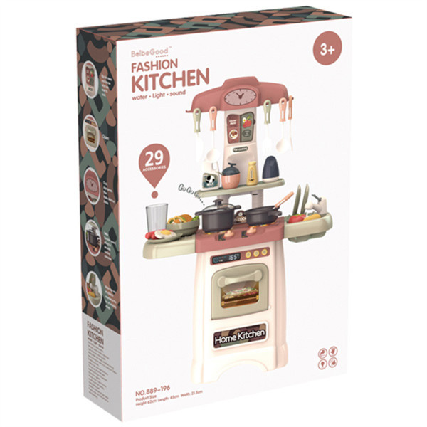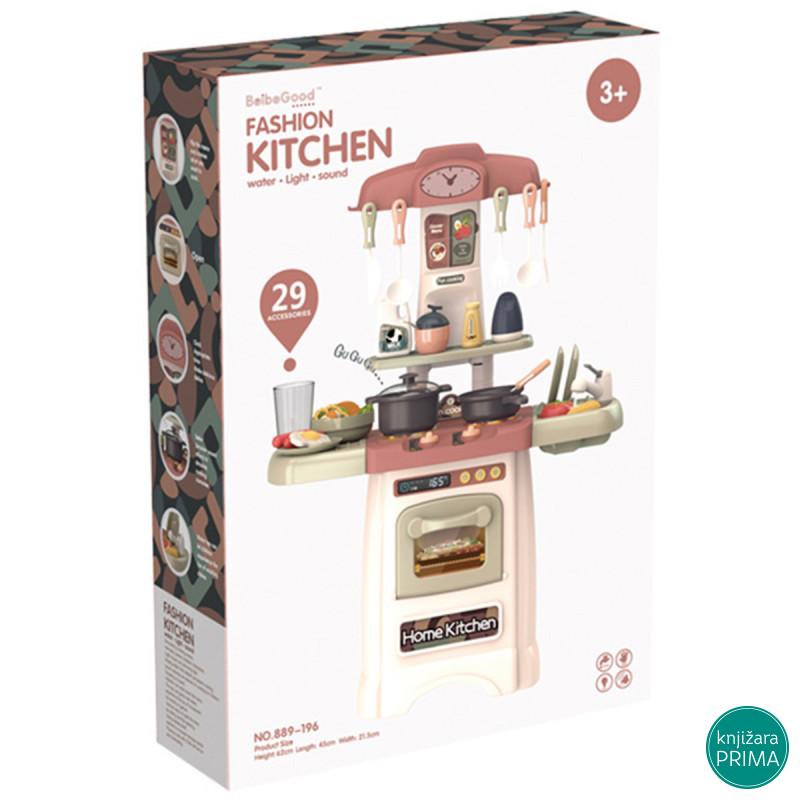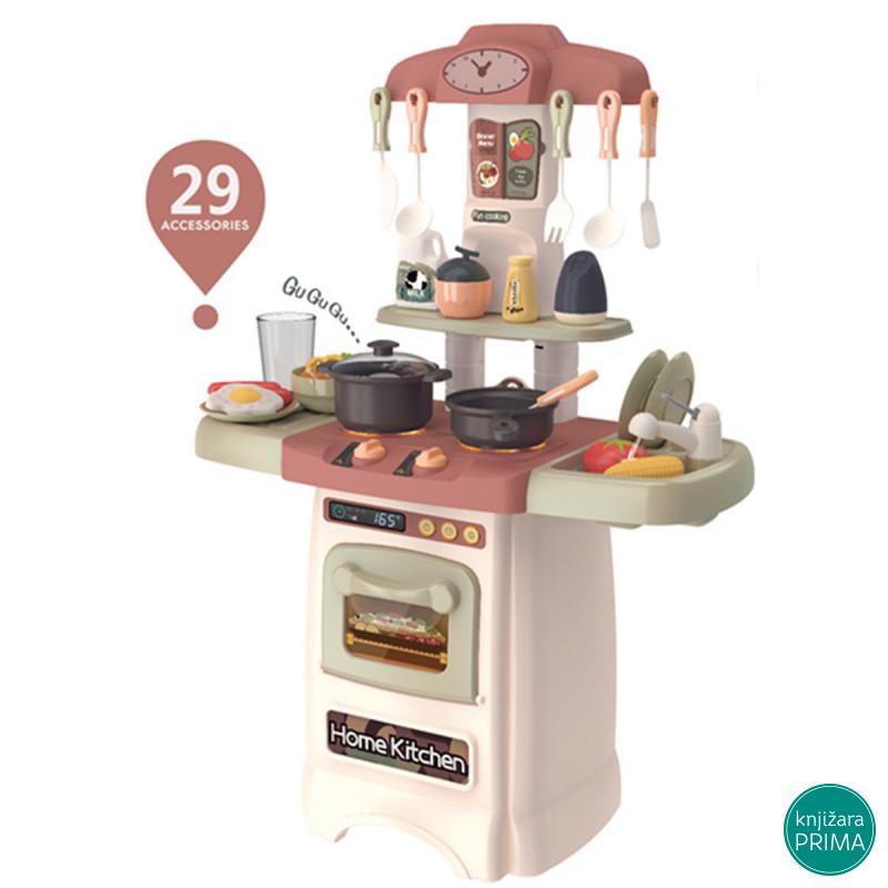 Kuhinja je kompletno opremljena sa svim elementima. Sadrži: šporet rernu koja se otvara sudoperu sa česmom deo za odlaganje posuđa policu za odlaganje začina i set neophodnog posuđa i pribora. Uzrast: 3+