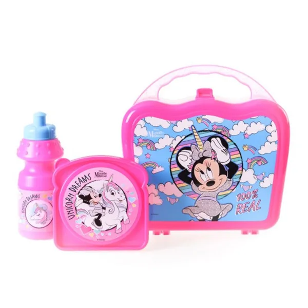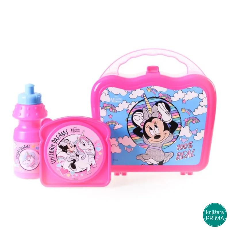 Packet lunch set za užinu Minnie Mouse Dimenzije: 25 x 11 x 24 cm Težina: 290g Materijal: plastika (PP PE TPR) Sadržaj: kutija za užinu i flašica. Detaljnije