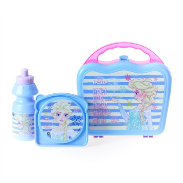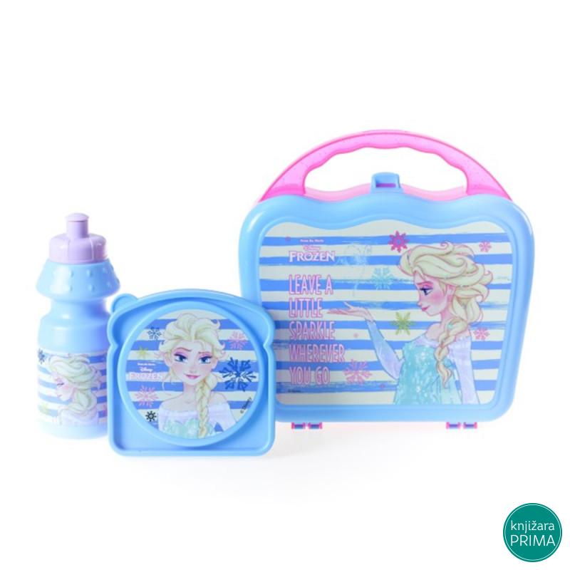 Packet lunch set za užinu Frozen Dimenzije: 25 x 11 x 24 cm Težina: 290g Materijal: plastika (PP PE TPR) Sadržaj: kutija za užinu i flašica