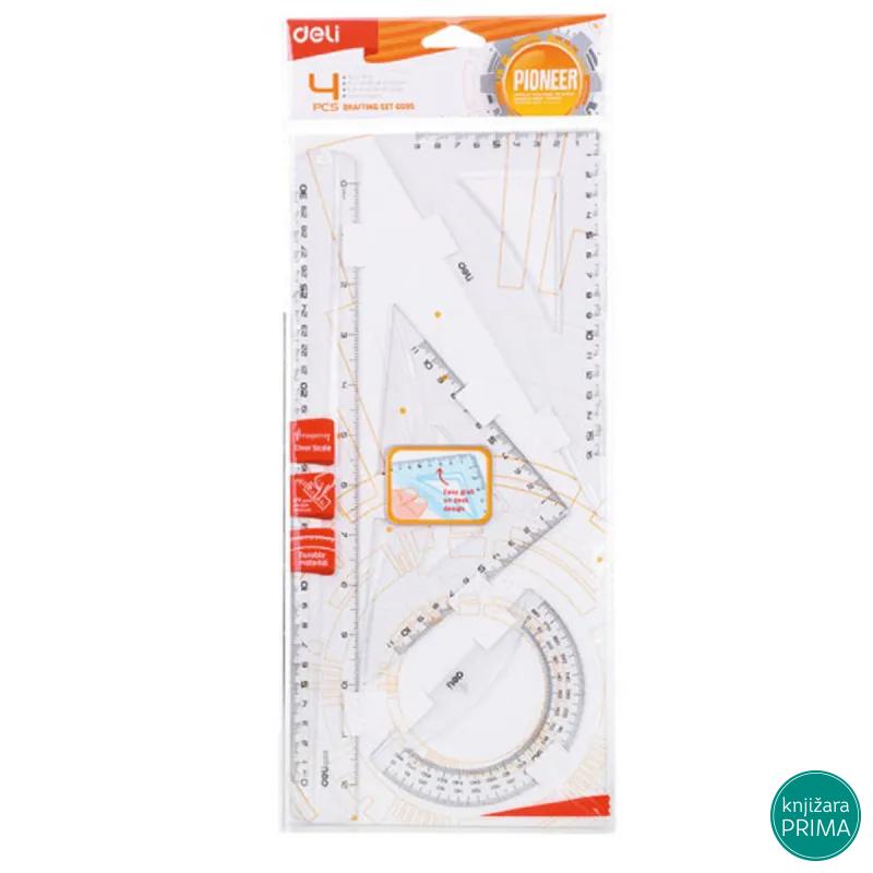 Geometrijski set lenjira od izdržljivog materijala. Set sadrži: Lenjir od 30 cm Trougao 30/60/90 od 16 cm Trougao 45/45/90 od 11 cm Uglomer od 12 cm. Detaljnije