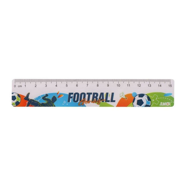 Štampani PVC lenjir sa popularnim fudbal motivom, izuzetno fleksibilan i izdržljiv u blister kesici.