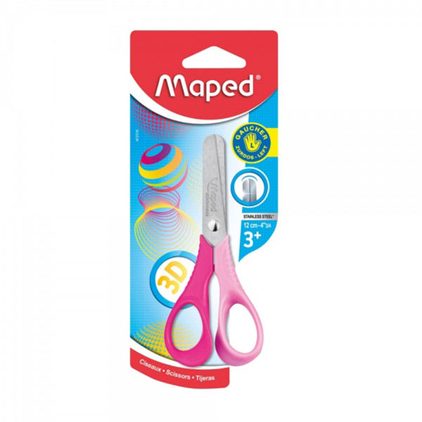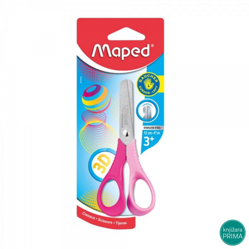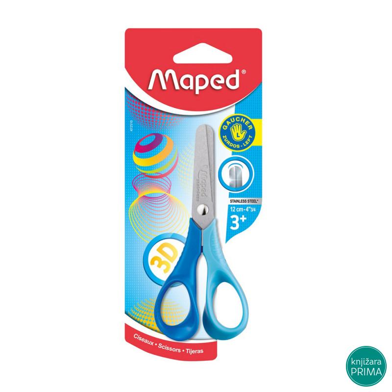 MAKAZE MAPED VIVO 12CM ZA LEVORUKE – 3D ergonomske ručke. – Zaobljeni vrh makaza. – Čelično sečivo. – Preporučeno za uzrast preko 3 godine. – Dužina: 12 cm.