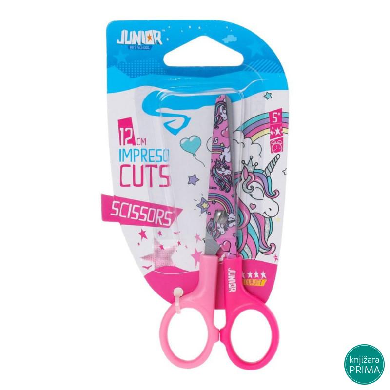 Dečije makaze na blister, za svakodnevnu upotrebu. Sečiva izrađene od nerđajućeg čelika. Zaobljeni vrh čini ih bezbednim za decu. Atraktivnog dizajna za devojčice.