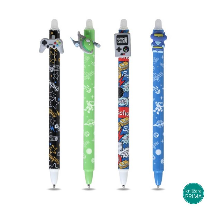 Izbrisiva deko hemijska sa gumenom dekoracijom i silikonskom gumicom koja ne ostavlja mrlje i tragove brisanja. Boja mastila: plava Materijal: plastika Debljina: 05 mm Dužina pisanja: 133 m. Detaljnije