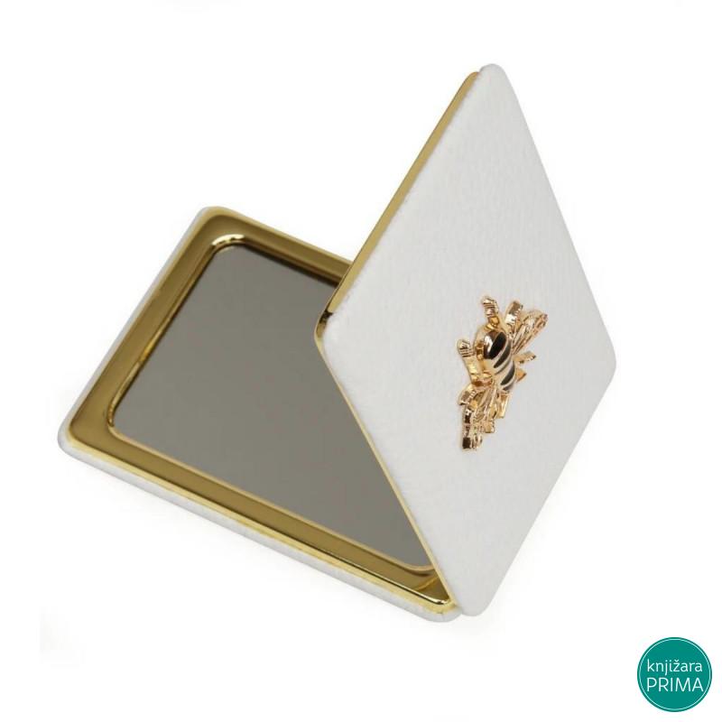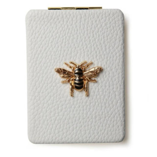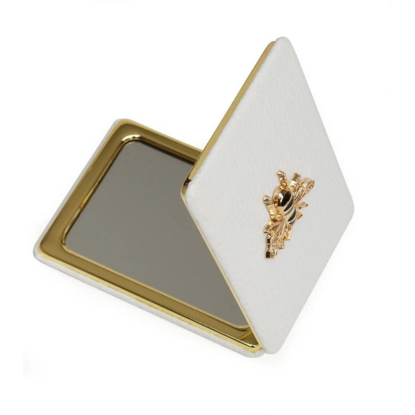 Alice Wheeler London predstavlja izvanredno kompaktno ogledalo koje odiše elegancijom i funkcionalnošću. Ovaj prefinjeni dodatak sadrži dva ogledala u okviru od metala zlatnog tona. Izrađeno sa pažnjom prema detaljima, ogledalo je smešteno u luksuznu vegansku kožu, ukrašeno prepoznatljivim znakom pčele, simbolizujući posvećenost brenda sofisticiranosti i kvalitetu.