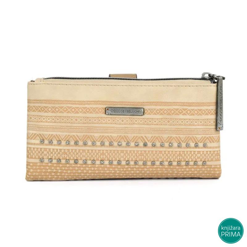 Veliki novčanik iz kolekcije Dogs By Beluchy postavljen originalnim printom sa motivima iz kolekcije. Otvara se na driker a unutra ima odeljak za račune i kartice i još jedan odeljak sa zipom za novčiće.