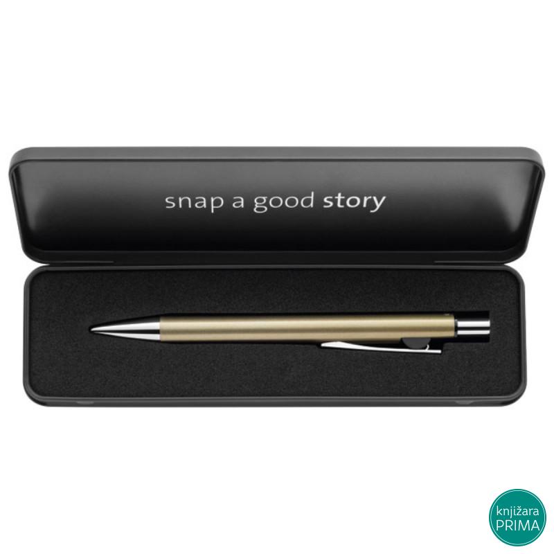 OLOVKA HEMIJSKA Snap Metallic metalna; mesingani vrh; dizajn prilagođen ljudima koji preferiraju minimalističku estetiku; završna obrada pearl (sedef) efekat naglašava visok kvalitet; mehanizam na dugme; pritiskom na gornji deo štipaljke mehanizam se otključava i vrh se uvlači; debljina ispisa M; boja ispisa plava; ne blijedi (document proof) prema ISO 12757-2; pogodna za laser štampu; dostupna u 6 metalik boja: srebrna, platina, zlatna, roze, bakarna i plava. Detaljnije