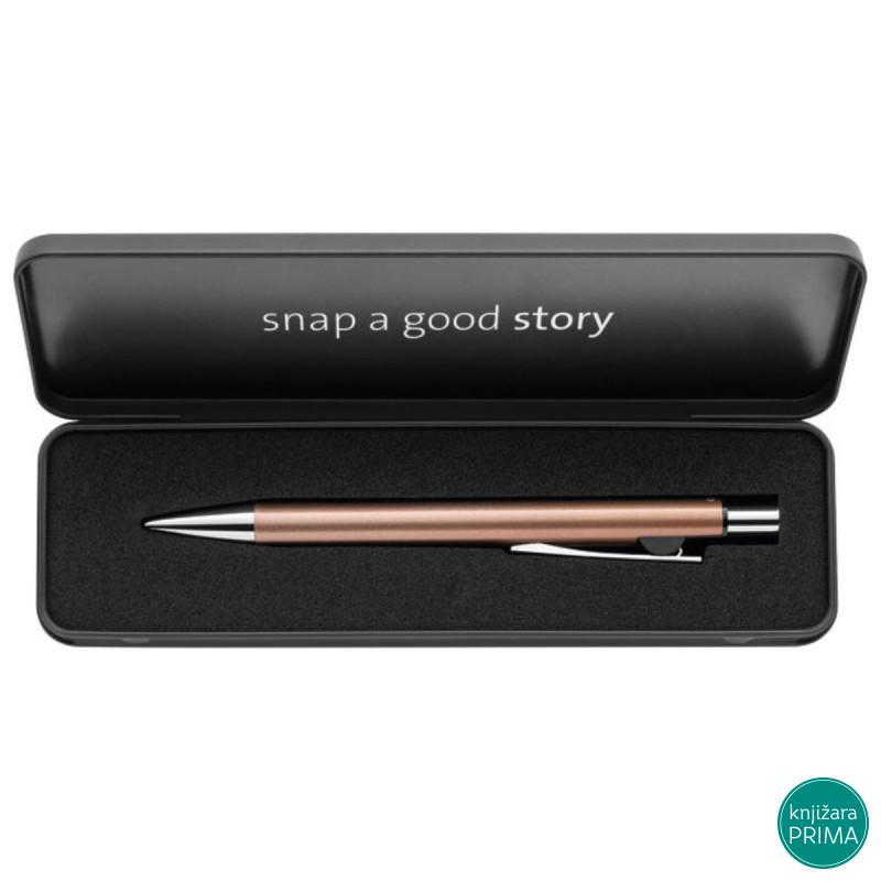 metalna; mesingani vrh; dizajn prilagođen ljudima koji preferiraju minimalističku estetiku; završna obrada pearl (sedef) efekat naglašava visok kvalitet; mehanizam na dugme; pritiskom na gornji deo štipaljke mehanizam se otključava i vrh se uvlači; debljina ispisa M; boja ispisa plava; ne blijedi (document proof) prema ISO 12757-2; pogodna za laser štampu; dostupna u 6 metalik boja: srebrna, platina, zlatna, roze, bakarna i plava