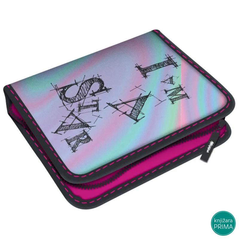 U pernici se nalazi 35 komada pribora: 12 flomastera, 12 drvenih bojica, 2 grafitne olovke, rezač, gumica, lenjir, hemijska olovka , tehnička olovka i mine 0.5 i 2 rasporeda časova.. Detaljnije