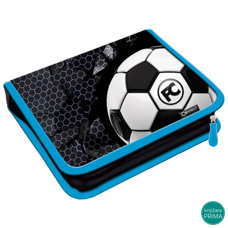Football pernica puna sa jednim zipom i dva preklopa. U pernici se nalazi 35 komada pribora: 12 flomastera, 12 drvenih bojica, 2 grafitne olovke, rezač, gumica, lenjir, hemijska olovka , tehnička olovka i mine 0.5 i 2 rasporeda časova.