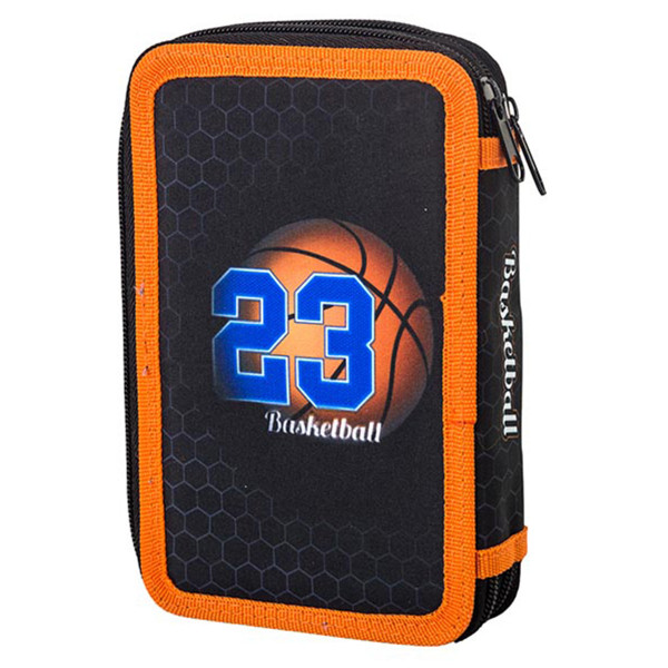 Puna pernica PLAY 2 zipa - Basketball 23 ističe se originalnim dizajnom i izrađena je od visokokvalitetnog materijala. Punjena je školskim priborom i sadrži: 12 Sazio drvenih bojica, 12 Sazio flomastera, 2 grafitne olovke, 2 hemijske olovke, rezač, gumicu i lenjir.
