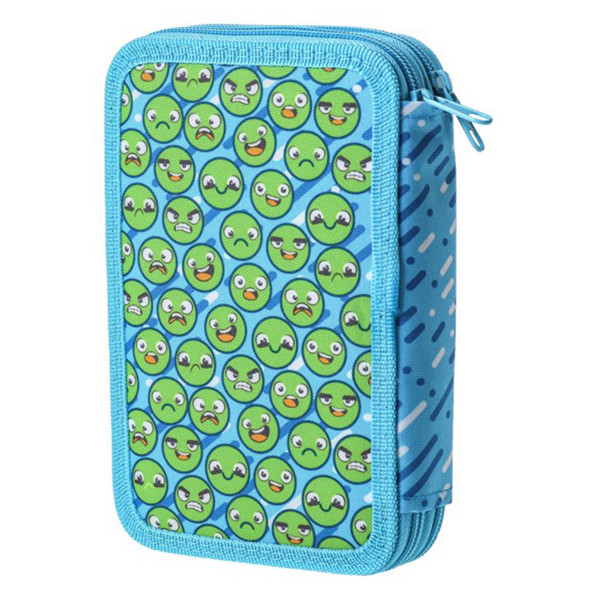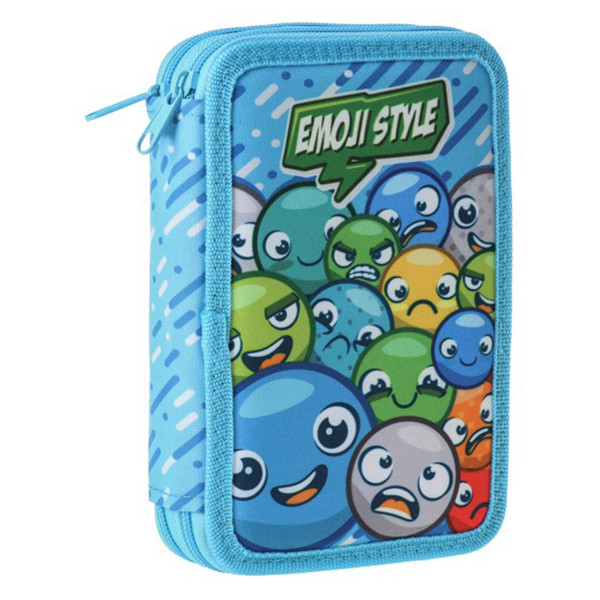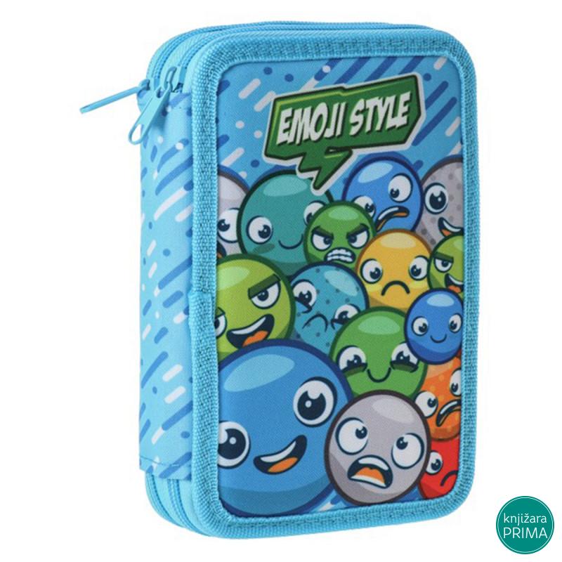 Puna pernica PLAY 2 zipa - Emoji ističe se originalnim dizajnom i izrađena je od visokokvalitetnog materijala. Punjena je školskim priborom i sadrži: 12 Sazio drvenih bojica, 12 Sazio flomastera, 2 grafitne olovke, 2 hemijske olovke, rezač, gumicu i lenjir.