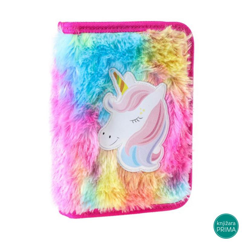 Puna pernica PLAY 1 zip - Unicorn shaggy ističe se originalnim dizajnom i izrađena je od visokokvalitetnog materijala. Punjena je školskim priborom i sadrži: 12 Sazio drvenih bojica, 12 Sazio flomastera, grafitnu olovku, hemijsku olovku, rezač, gumicu i lenjir.