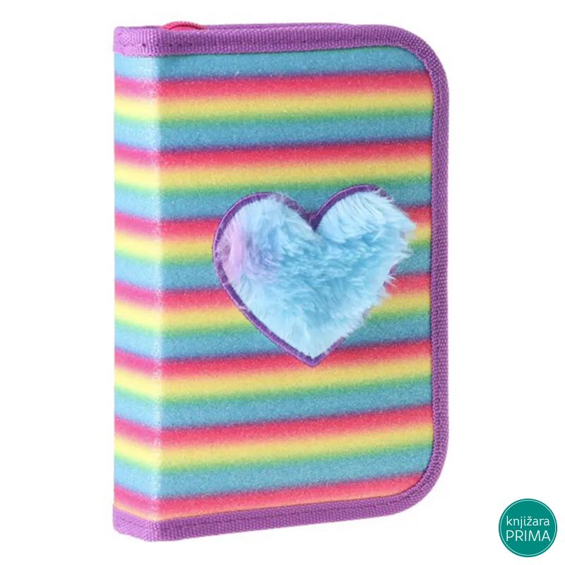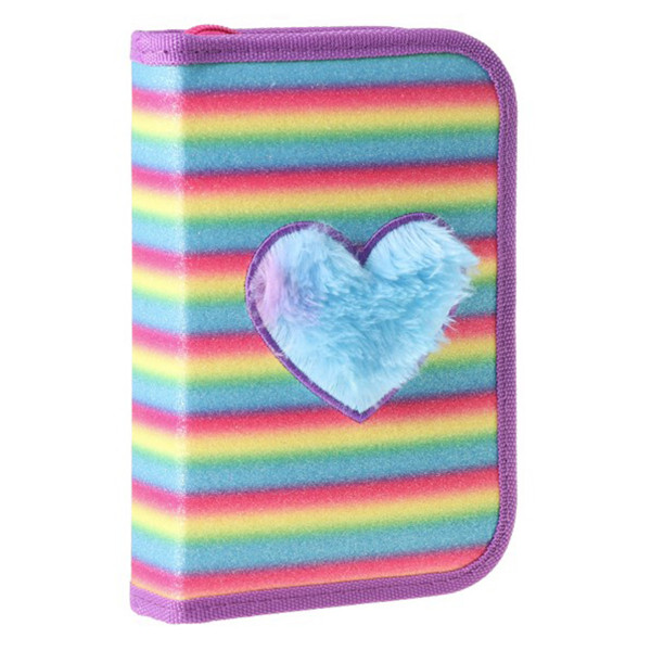 Puna pernica PLAY 1 zip - Plush heart ističe se originalnim dizajnom i izrađena je od visokokvalitetnog materijala. Punjena je školskim priborom i sadrži: 12 Sazio drvenih bojica, 12 Sazio flomastera, grafitnu olovku, hemijsku olovku, rezač, gumicu i lenjir.