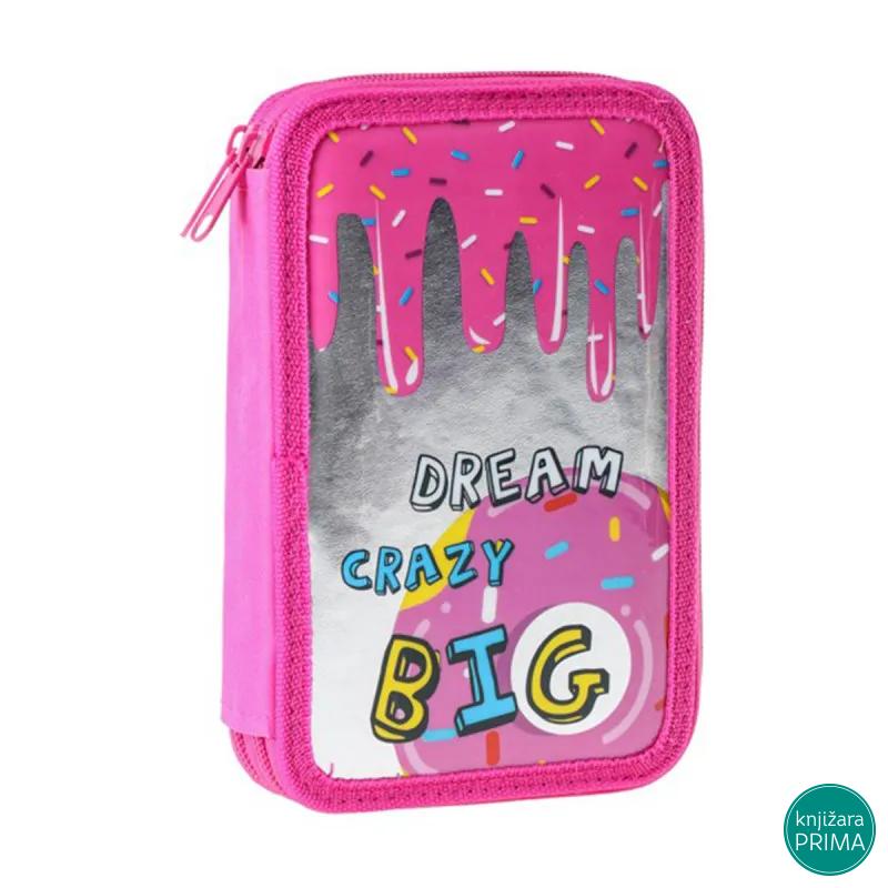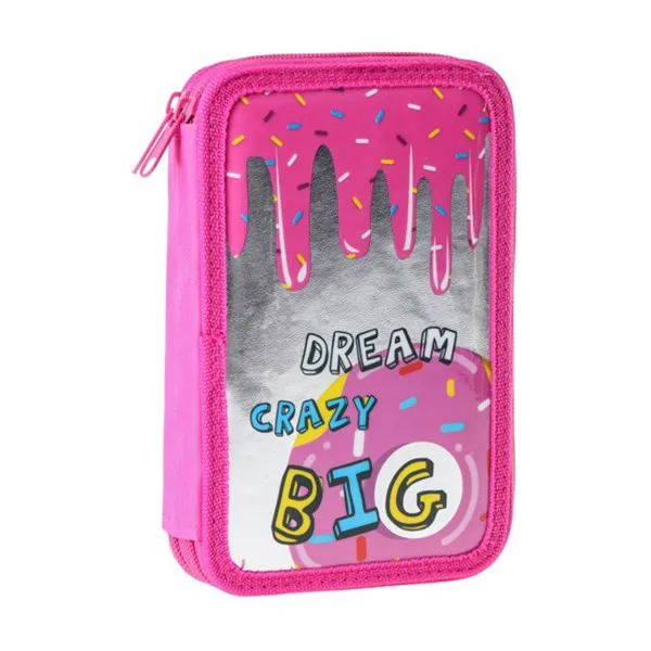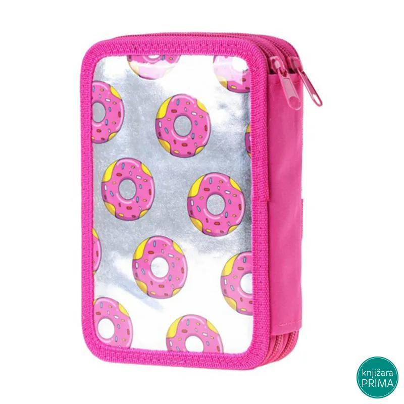 Puna pernica PLAY 2 zipa - Donuts ističe se originalnim dizajnom i izrađena je od visokokvalitetnog materijala. Punjena je školskim priborom i sadrži: 12 Sazio drvenih bojica, 12 Sazio flomastera, 2 grafitne olovke, 2 hemijske olovke, rezač, gumicu i lenjir.