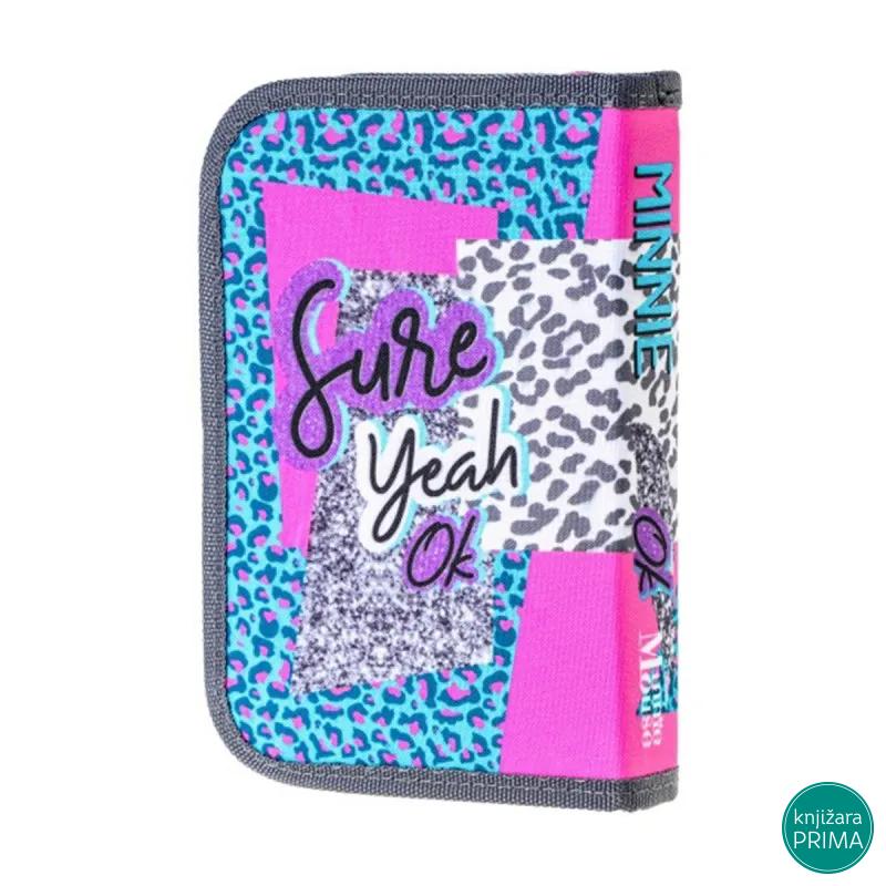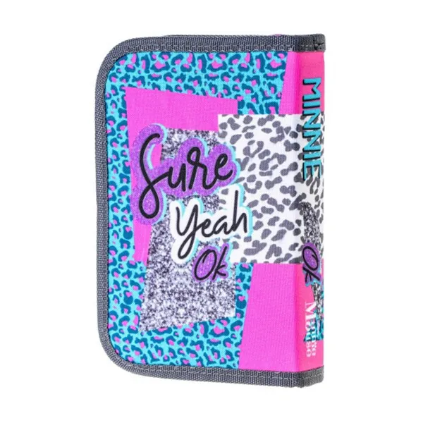 Puna pernica PLAY 1 zip Minnie Mouse Wild spirit ističe se originalnim dizajnom i izrađena je od visokokvalitetnog materijala. Punjena je školskim priborom i sadrži: 12 Sazio drvenih bojica, 12 Sazio flomastera, grafitnu olovku, hemijsku olovku, rezač, gumicu i lenjir.