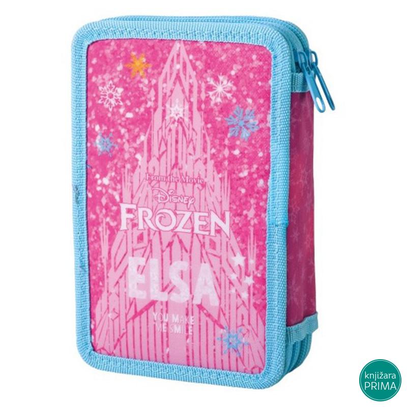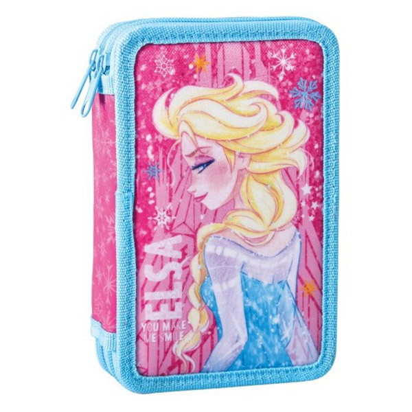 Puna pernica PLAY 2 zipa - Frozen Pink ističe se originalnim dizajnom i izrađena je od visokokvalitetnog materijala. Punjena je školskim priborom i sadrži: 12 Sazio drvenih bojica, 12 Sazio flomastera, grafitnu olovku, 2 hemijske olovke, rezač, gumicu i lenjir.